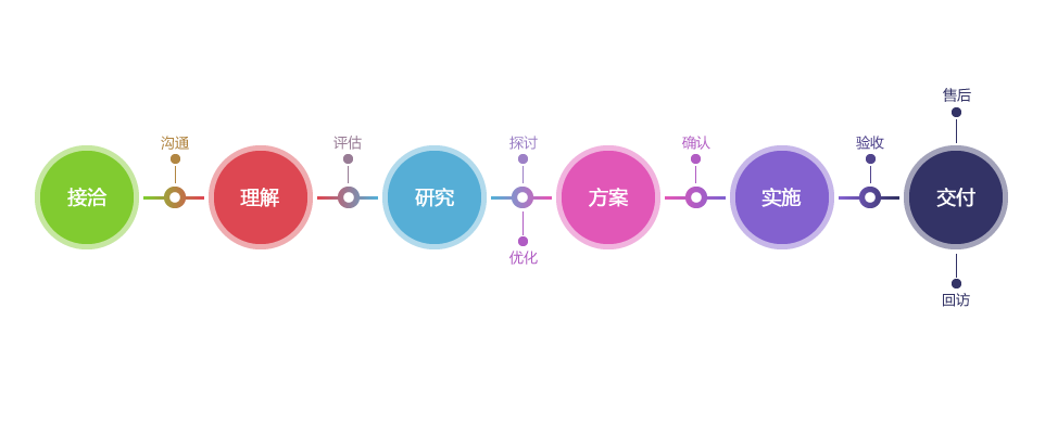 清晰、可視、可持續(xù)改進(jìn)的研發(fā)流程服務(wù),在每個(gè)環(huán)節(jié)我們都秉承著打造高品質(zhì)移動(dòng)互聯(lián)網(wǎng)解決方案的開發(fā)理念。